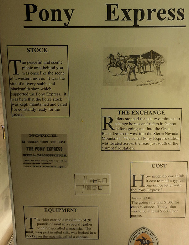 This left the Mormon Elder Orson Hyde to build the town known today as Genoa. Hyde was an admirer of Christopher Columbus thus he wanted to name it after the Italians explorers birthplace.  This led to the building of one of Nevada's most gorgeous towns as later came the Masonic Hall, Courthouse, Fire House and of course the upkeeping of the Genoa Bar which was built in 1855 back when the Mormons were settling this area and still it exist today. Nevada's first newspaper called the Territorial Enterprise was founded in Genoa in 1858 and employed Mark Twain as some of you know him by as Samuel Clemens.  Genoa was also a regular stop for the Pony Express during its 18th month bonanza that ran through 1860 to 1861.  Then you have James W. Haines the inventor of the V-Flume which ran freshly cut logs lumbered in the Carson Range to the valley to be exported for the use of the construction of the mines and all the local towns who came from Genoa. One of his biggest flume operations ran through an area known as the Flume Trail by Martlette Lake!