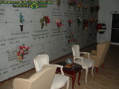 In 1989 the cemetery expanded to another 13 acres due to the growth of Disney. Eventually two funeral homes were built and by the year 2000 another 10 acres were added but are not developed as of yet. After this a cremation garden was built. The cemetery is full of gardens and a mausoleum prayer building which you will see in the photos below. Its so well taken care of that you almost do not even feel an ounce of ghostly activity. Although the Mausoleum is so huge and full of permanent guest that the main focal point within the cemetery is this area from our data collected on our excursion here. You will not find any fancy angel statues or anything of the sort 90 percent of the cemetery is flat stone burials. There is the Great Tomb Mausoleum, A Chapel on site, funeral home on site, courtyard, and babyland. Its a nice peaceful place not the most haunted by sometimes as a ghostbuster you need serenity. © By LordOfThyNight-Rick