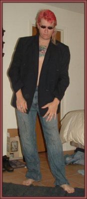 200lbs, long hair, gold brown eyes, 16 tattoos, eyebrow pierced. I am