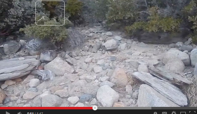 While the team got ahead of me I spotted a blue UFO over the canyon and you bet your ass I filmed it. Its not a long clip but its enough for me to say that if we did not find Bigfoot their is always the possibility of aliens in the region. I believe I seen a second object but as we hiked up into the woods I lost sight of it till later on we made it out of the canyon and by then there was nowhere to park off to film it. It was allot of tedious work being on the dry lake beds between having to go up rocks the size of houses to soft sand that really required allot of lower body strength to try to ascend through it so it was quite challenging.