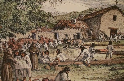 The last of the Zayante people was a woman who lived many years near Zayante Creek in the mountains just behind Santa Cruz. She is buried somewhere in Henry Cowell Park but nobody knows where. But can you imagine being the last of your tribe how lonely yet painful that must had been. Lets face it the Natives were not treated fairly when the Spanish arrived they were forced to convert to Catholicism, disease wiped out there tribe and plagues. In a sense they were not treated nice either because the Spanish seen the tribes as a labor force to build there missions. While many natives lived on the grounds on Mission Hill most of them were not very happy. As a matter in fact the entire hillside is littered with unmarked burials because some came to the Mission only to die here. While the Holy Cross Church is not the oldest site found on Mission Hill behind it is an old stone wall. The Spanish would make a cement often called mortar piecing together rocks. When they put a layer of mortar down they would then put a layer of rock till a walk was formed. The oldest wall or remnants of any structure can be found at this site. But really the wall is all that remains of the original parish and today is behind fencing to protect it. Nobody even knows what the wall was for but between both of the walls is a series of gravestones so I assume when this building had collapsed instead they used this area as a small cemetery perhaps for priest or other parish members. The Padres of the mission were farmers when they were not teaching the bible. They would harvest barley, corn, peas, beans and wheat. But they also were ranchers and when they came to this hill to begin the mission they only had 33 cattle. But by 1814 they had 3,300 cattle, 3,500 sheep, 600 horses, 25 mules and 46 hogs. When they were not farming they were cutting down trees sending out lumber to the other missions. Just remember that when the Spanish came to Santa Cruz most of the forest in the region were redwoods which provided much of the needed lumber to construct stables and other missions in the area. They could cut down a redwood tree cut it into boards then export it via wagon up the coastline.