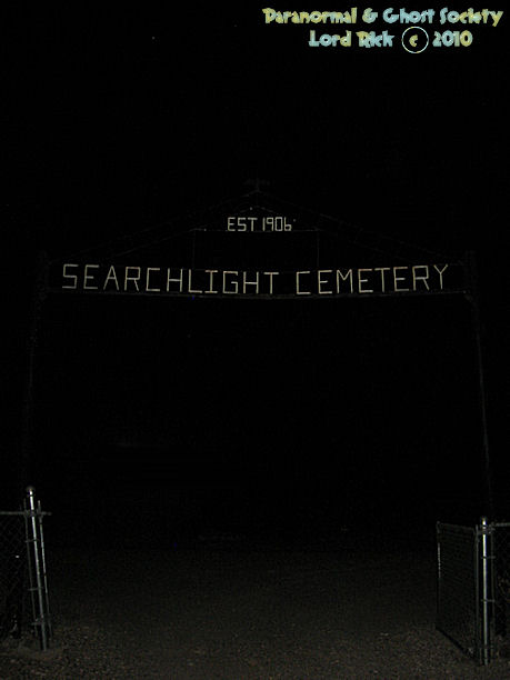 In the early 1900s Searchlight Cemetery was established and is also the place where Senator Harry Reid is buried along with a couple Colton Family members and many promiment individuals who made Searchlight what it is today. In 1961 an airplane had crashed destroying many of the markers within the cemetery and by 1986 all that remained were a couple foundations and stone pieces scattered within the desert brush. The cemetery is at the end of the runway and so were a couple other small ones in the area which I believed were combined some say bodies were moved but no records or proof exist of this. Most of the gravestones are new so their is evidence that perhaps the older stones were replaced. Other cemeteries were graded over or rather downtown Searchlight had a few graves right off the streets. In the days of the wild west if someone died you were buried at a random location whether it was near the old saloon or behind your house up on the hill. Their are about 30 unmarked graves out of the 200 burials here. At one time this cemetery was so deplorable that the boy scouts came here just to clean it up a little. Most of the burials are that of miners but not all of them since many locals were buried just outside of the many mines surrounding Searchlight. Most of what your going to see is old miner tools.....piles of rocks with minerals embedded in them....and some vandalized grave sites like a wrought iron fence torn down to the ground. The entrance of the cemetery has this old pioneer feeling and I remember reading a story about Senatory Harry Reid once being involved in caretaking this place or at least some of his family members. Their is allot of history among its 2 to 3 acres which pertains to the town itself!