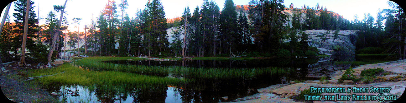 Although many lakes are accessible by car these sister lakes are unique as its a worthy hike to reach them. I had the experience to spend three hours in the forest on the opposite side of the ridge at night. What I learned is that its very slow going as the granite rocks are bigger then houses and many large 200 year old fallen trees are scattered throughout its thick blanketed forest. Which can only lead to speculation that something would be able to work its way through the harsh forest come down to the lake and go right back up to the primitive outskirts which surround this scenic wonder.