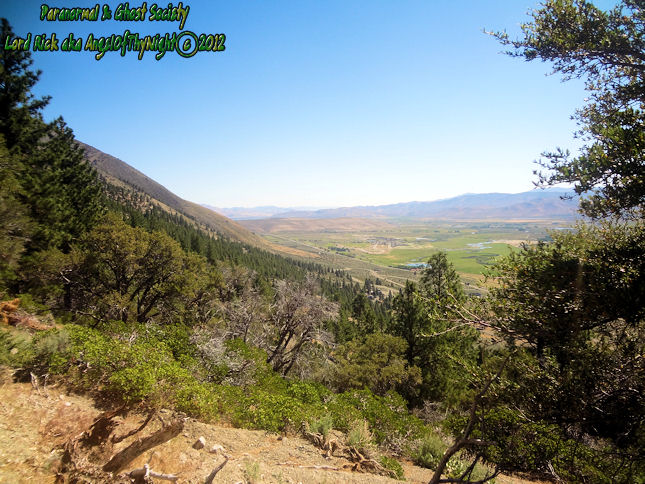 Carson Valley below, now a broad expanse of cultivated and pasture lands, was originally a strip of meadow along the banks of the river where 49’ers, following the California branch of the emigrant trail, rested their stock and bought vegetables from the Mormon Station owners.