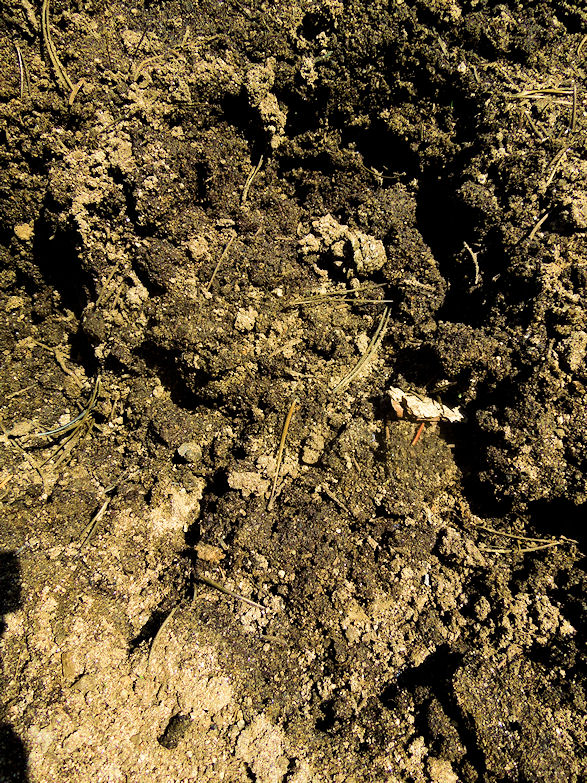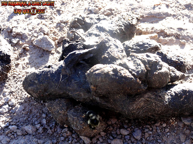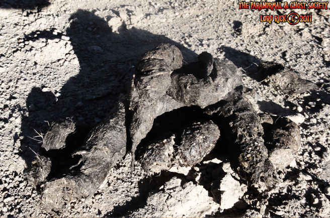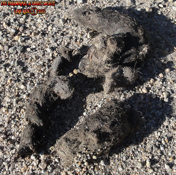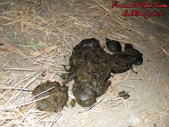 The stool you are viewing ABOVE most likely is that of a mountain lion. Generally Mountain Lion stool is just a bit larger then your average sized house cat its also full of hair since they are generally meat eaters. These two piles ABOVE were not very large so we were fairly sure that it did not come from a Sasquatch. But it also reminded us that their are predators in the region so we have to tread carefully. The stool BELOW is more then like that of a Sasquatch at least we theorize. When you factor in the amount of the stool and calculate its size whatever made this had to have a very large anus as one of the pieces is the size in circumference as my sons fist. Bigfoot stool looks very similar to a human but generally their is a higher amount of it and its larger. It also does not contain hair as I think being the intelligent creature it is that it would only eat the parts of its prey that would benefit it such as the liver and internal organs unlike a mountain lion that eats its entire prey. We found this at a remote location moments later after photographing and video taping it I seen a large 8' tall creature walk between two trees. It had light shaggy brown fur and it was all muscle. I would theorize that we were very close to its domain and that it may have gotten a bit serious when it seen us taking a sample of its stool.