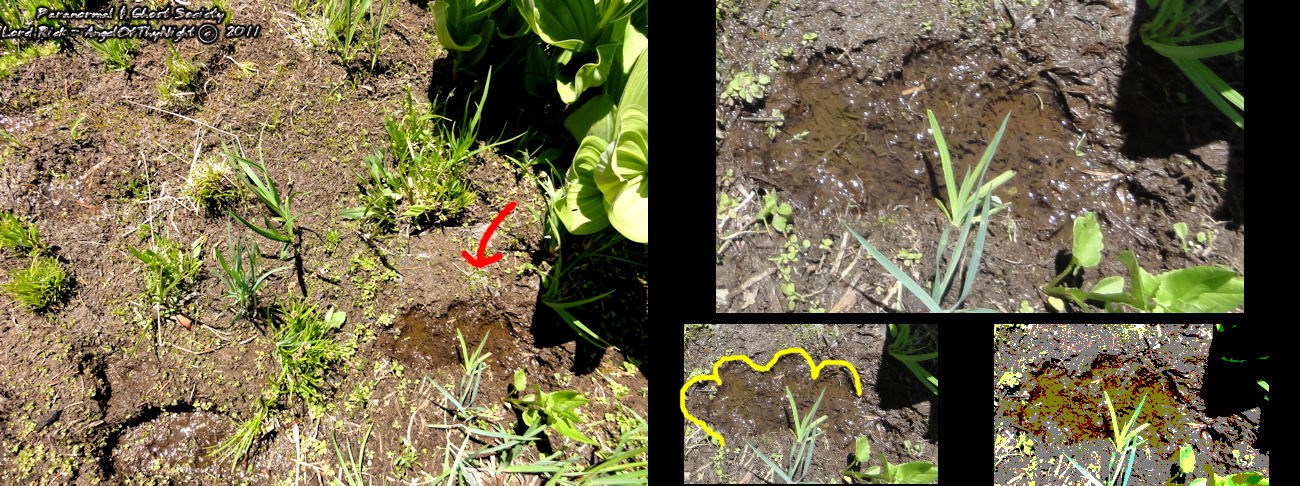 This massive track was found ount in the meadow of Union Valley. The area is rather muddy which makes it a great area to seek out tracks. This also goes with the fact that snakes and other creatures roam this plain.  The track does have a heel and some toe impressions. Whatever it was had a wide foot and some weight to it as well which makes it a plausible Sasquatch print.