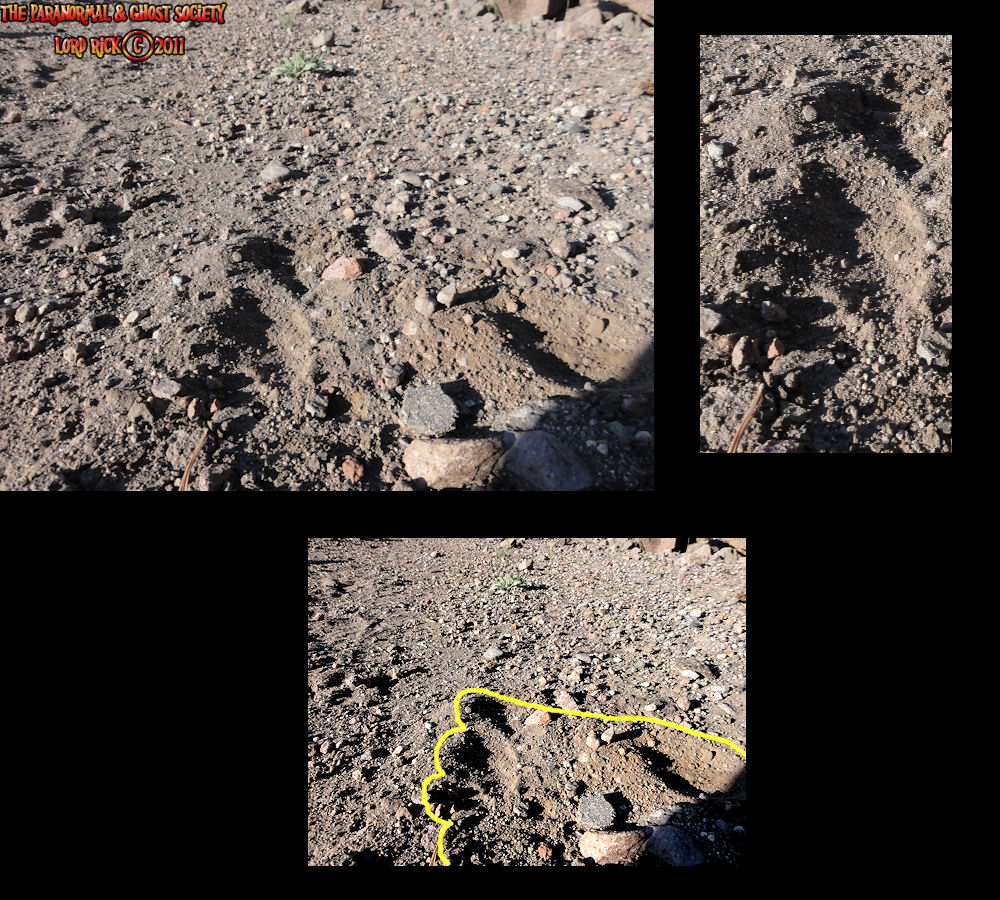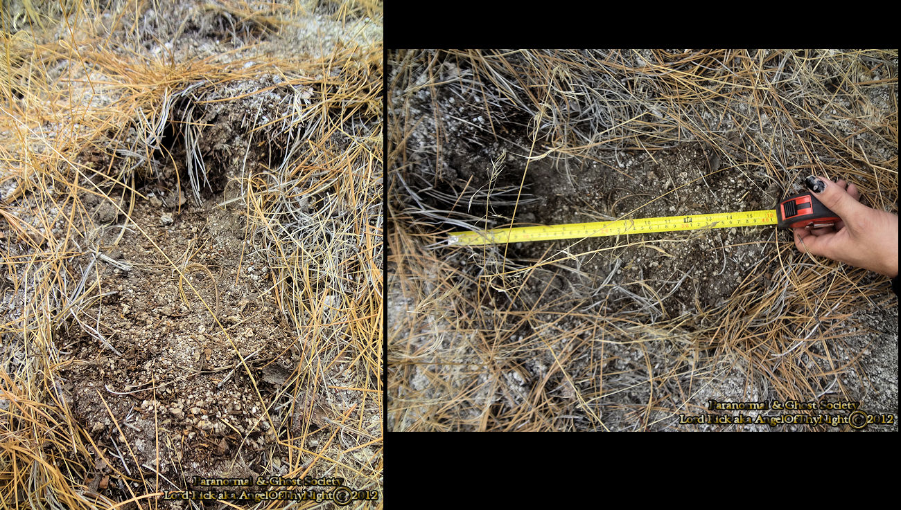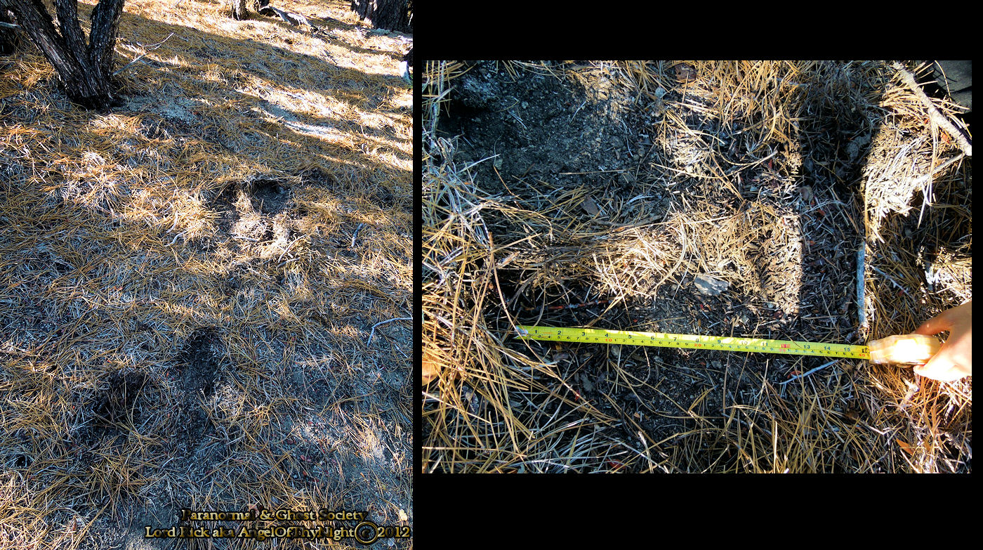 These tracks may not look like much but they were found on a ledge overlooking the entire Seven Mile Canyon as if something appeared out of thin air leaving these impressions. They only are impressions that run no more then 8' then all of sudden disappear. This is a very secluded part of the mountain full of thick under brush and trees. Whatever made them obviously had a much larger foot then me.