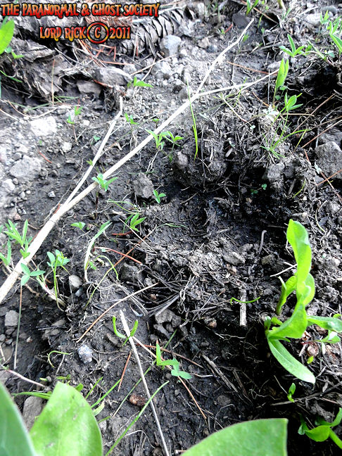 The photograph to the left reveals how wide the track with the toenail scrapes is which is an estimate of about 6" wide definitely a much wider foot then your average sized adult human. The track to the right is a close up of a track I found in some brush not to the far away from the other tracks you see on this page. However in the photograph to the right you have clear signs of actual toe impressions that are dug fairly deep into the earth. These giant toe impressions match up in similarity to the tracks we discovered on Devils Ladder above. Whatever this is has very large toes which is the obvious but it also has some mass. The track in the photograph to the right however is much older then the newer track formed to the right.
