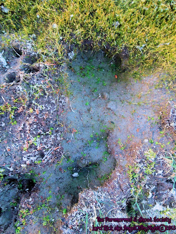 A different view of the Meiss Lake impression this time you can see the toes a little better. It definitely is a massive impressiion whatever made it. It had no arch either it was just a very large foot foot that happened to step down right into this muddy patch along the lake shore.