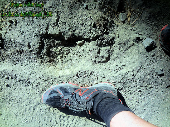 A very thick heel impression although collapsed again we found this track in seclusion. We know something big walks admist the Jobs peak forest. It appears what whatever is making such tracks leaves very deep impressions although the decomposed granite is soft it takes a quite considerable amount of weight to leave such an impression even like this heel impression you see.