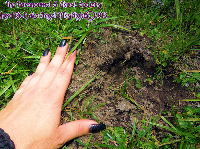 This is a hard impression to see but we found it in a hollowed out tree and noticed that their was an area on the ground that was pushed down in the shape of a footprint. I measured it and we came up with about 15" we have to consider the fact that Bigfoot probably lives out in the woods but he also seeks shelter from it. That shelter could be dens, caves, tree tops or even hollowed out trees such as this.