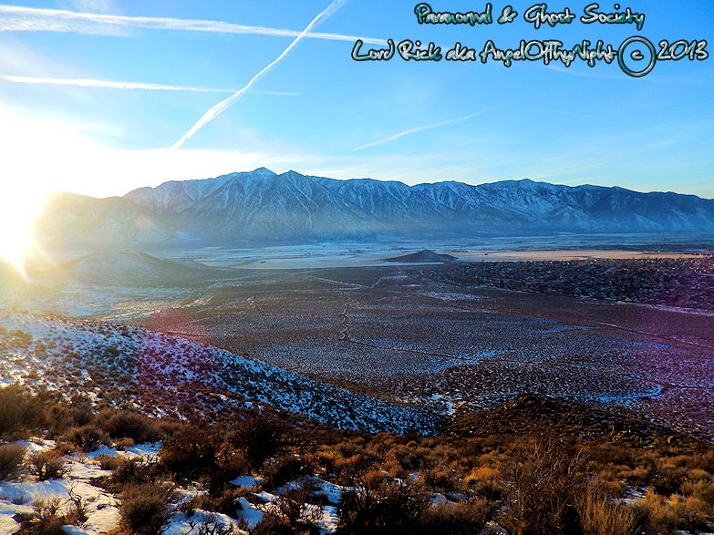 When we made it to the top we took a bunch of scenic photos of the snow covered Pine Nut and Carson Mountains. You could also see the snow covered sierras but the one thing that stands out most is that this area is very rural. I understand it was home to the Washoe for over 10,000 years and I hope some of them will talk to me about those lights overtime as trust develops. We have had our differences but I will not judge them on the color of their skin nor should they mine but rather what is in the soul.  I have talked to a few Washoe tribal members at least the ones who want to come forward and told me that they had family that witnessed day time UFOs in this region.