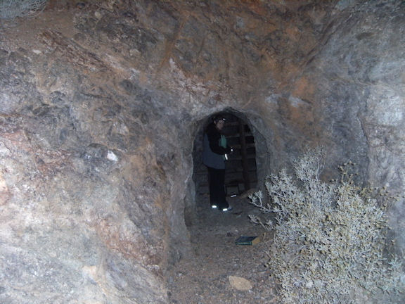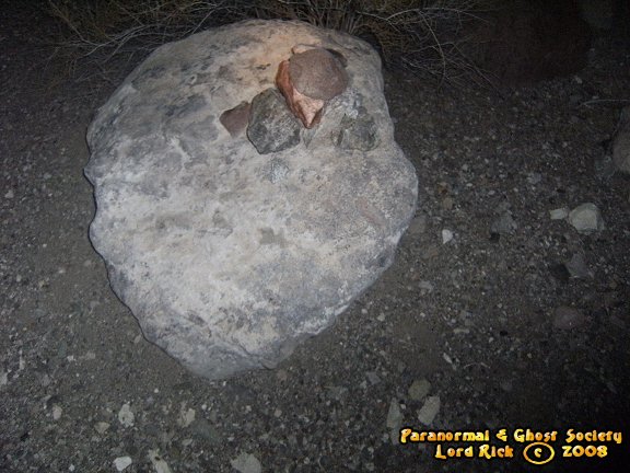 Skull Mine might just be the most eerie place in all of El Dorado Canyon and we first visited it near Halloween of 2008. Basically I was told its part of Jubilee Mine but across the road a ways off in the desert. What is interesting in that the entrance is very natural and shaped like a skull or the boogie man from the movie scream. Its sealed but their appears to be other ways into this mine we have more explorations to do. This place has alot of evil emanating from it much more then even Jubilee. At one time I think it was the other way around but based on the holy bile at the entrance it is a sign that a priest or someone put it there to seal in the demons which roam its dark tunnels. I could feel it almost taste it in the air that something strong was deep in that tunnel staring at me from the darkness. I generally can feel certain qualities about certain places. This entire mine is a mystery to us who knows what occurred here but the history would be very similar to Jubilee since they are both part of the same land grant in the area. © By Lord Rick