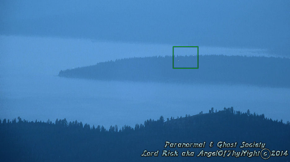 Anyhow the light show we seen was phenomena I figured I did not pick anything up because we were on top of Slide Mountain and still miles away from the north shores of Tahoe. But we did it we managed to get some good evidence we had no idea we thought we would find some tracks, stool or maybe hear some vocalizations. That was not the case we literally seen a fleet of UFOs I have no explanation for the hovering objects or how one would appear on the eastern edge of the shoreline of the peninsula then seconds later would be on the western shore of it just very weird. While a couple lights hovered over water and fog one of them is just hovering over the tree line on the peninsula just sitting there so definitely strange.