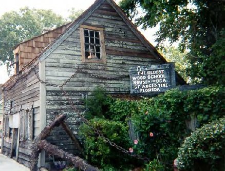 The oldest schoolhouse in the United States dates back to the year 1716 when it was the homestead belonging to Juan Genoply. The house did appear on the tax rolls in the year 1716 and is said to have existed long before then. The house was constructed of red cedar wood and cypress. Wooden pegs were used to keep the timbers in place. Everything was built by hand including the nails. This is as old fashioned as your going to get. When this was a living quarters it had no running water, electricity, kitchen, or privy. The drinking water had to be drawn from the well. The kitchen was housed in a separate quarters on the grounds this was too reduce the risk from fire and eliminate excess heat since the Florida summers are long and hot. The privy was later dug out away from the building with a enclosure for privacy. The house was just a single room and Juan Genoply was not married so it was just enough to suit his needs. Eventually he did get married and the house was made into a school. So they made there living quarters upstairs for his family and used the downstairs as the classroom. In 1788 the school house was the first co-ed school educating girls and boys together. Today if you were to visit the school house you would see various figures dressed during that time period attire. The Animatronic figures of children and the school master tell you about themselves and a typical school day. There are textbooks used by students, school artifacts, cooking utensils of that time period. If you visit here you get a free honorary diploma for your visit. Behind the school house there is a garden where the kitchen resides, privy and well where water was drawn. There is also a 250 year old pecan tree which existed even when school children attended class. The garden has many tropic plants like bird of paradise and hibiscus. One could sit on a bench and enjoy the inspiration this historical place represents. There is also a giant chain that wraps around the school house and is tied to an anchor. This was added in 1937 when a hurricane threatened St. Augustine so they added it to secure the wooden school house and prevent it from being damaged. Rumors of the old school house being haunted may be very true. As I recall one person photography a child looking out the window although it could be one of the Animatronic figures in the window its hard to say. But the little school house has an eerie sense to it the type where you can look up into the upper second story window and feel totally watched. I mean not only is it the oldest school house in the nation it is perhaps the most haunted as it sits in the heart of St. Augustine. We are really happy that we were able to bring you an investigation here. © By Rick-AngelOfThyNight