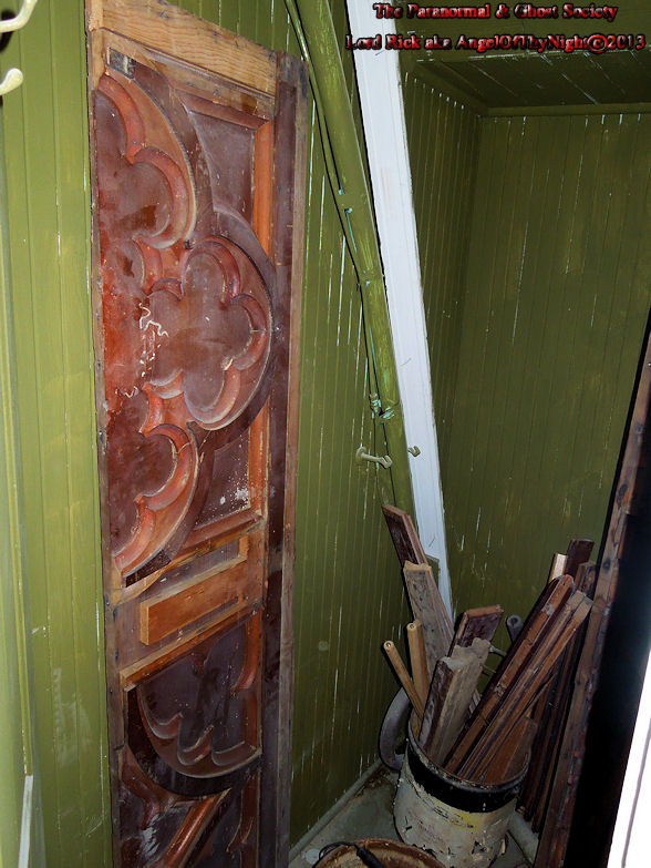 This is the closet in the private chambers where the priest slept and spent most of his time while serving the church. Inside the closet is this wood panel like door but it does not have a handle. It is obvious that these may lead to a secret room or hidden passage which is not uncommon in older churches across the country. If you want to see evidence of the paranormal please check some of our videos of EMF readings and EVP's recorded of ghost in some very energetic locations within the church itself! We will return for a second investigation in a year or two to followup on our case.