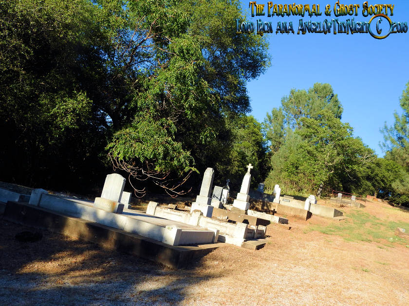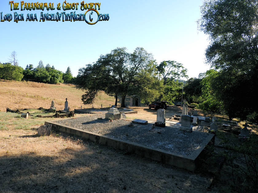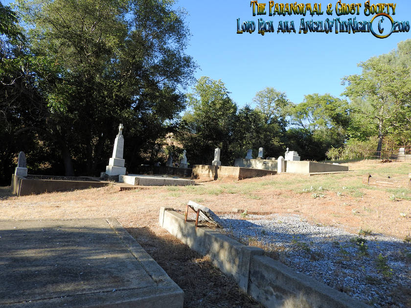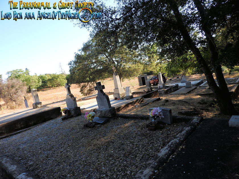course surrounded by some of Amador Counties oldest structures. The cemetery is owned by the St. Katharine Drexel Parish and maintained by the Immaculate Conception Catholic Church located up in Sutter Creek because the Drytown Catholic Church had burned down. I read that the foundation where the church once stood can be seen at the edge of the cemetery which appears to be where the fire bell today is located at serving as a memorial. At the time we visited here we did not realize it though but wondered why a foundation would be in such a cemetery. Back in the boom town years for many of these mining towns often had a city cemetery with a church residing out in front of it or nearby. More then often churches sat near the cemetery they tended to and had service at. I kind of found this cemetery by accident this is because the Drytown Cemetery to the south was inaccessible and is private property. Reasoning being is that its landlocked by a working cattle ranch. Their was a civil proceeding between the owner and the county however the county had lost. Sad to say its one of the oldest cemeteries in Amador County and the only way you get to see it is to obtain permission through the head of the General Services Administration for Amador County. So we were left with exploring St. Stephens Cemetery instead which turned out to be a really serene historic place because it contained some of the first Catholic Parishioners who came to Drytown California making it a very significant site! Peter MacCabe an Irishman was killed in a wagon accident on the road between Drytown and Ione. Given that he was the first interment here it would seem another name rang a bell here to which is the gravesite of Manuel King who was buried here in 1864. He was one out of 100 people who was killed or went missing in the explosion of the steamboat "Washoe" in Rio Vista. Only seventy had survived the tragedy others had either perished due to the flames or drowned in this tragedy. Its graves like these your going to find when you explore this cemetery on a hill surrounded by green pastures of grazing cattle and nature. As a matter in fact I loved this place so much my first time visiting that I had a picnic and tried out my new propane grill near some benches near the old church foundation. Maybe its not ideal to have a cookout in a cemetery but this graveyard is more like an intimate park like setting perfect for visiting in the Spring. Drytown California today is a semi-ghost town and it sprang up about a year after the gold strike in Coloma. It was a difficult place to placer mine because of the lack of water which is how it had gotten its name. But its real downfall was the fact that fires had ravaged it so many times including burning down the church which stood near the edge of this cemetery. When the gold had ran out most of the people left which was around 1860 and they went to Jackson California to work the deeper mines. Despite so many fires Drytown has a few buildings which still date back from its boom era in the 1850's. Supposedly not far from here is a plastered adobe structure on an old wagon road which is the oldest in Amador County which resides in a garden. Definitely plenty of gold rush history here including this Catholic Cemetery which is why it was so important for us to visit and do research at. Dry Creek runs through town not to far from this cemetery early placer mining took place here in the spring of 1848 when Mexican, Indian and American Emigrants searched for gold in the gravel along the creek. Back then the creek probably flowed more often and plentiful in comparison to today's times. But its that early mining that led to the growth of this town which really never died and today is the oldest town in all of Amador County. As a matter in fact in the towns early days rumor has it that so did twenty-six saloons which also sprang up which often led to drunk brawls. Along with that about thirty cabins and tents which sat along the creek which are long gone today. Rumor has it you could cross this creek in the towns heyday by walking over a fallen tree then in the summer months when the creek dried up you could cross anywhere within town to get to where you had to go. The town had it all though stores, butcher shops, hotels, taverns, homes, theater not far from this cemetery, four stamp mills, school, Catholic and Protestant Church, Monte tables and even a post office. Just like any town in the west the fires, epidemics and travesties did occur so death was common. It also had its fair share of lawlessness as in 1855 five men and one woman were slaughtered by a group of Mexican bandits who used an axe, guns and knives as an act of revenge for a fire that was intentionally set which burned down the Mexican part of town. More then likely the victims of the Rancheria Massacre of the 1850's are buried in the Drytown City Cemetery not St. Stephens since at the time this cemetery was not erected till the 1860's. As being a veteran paranormal investigator I can tell you that this grassy knoll the cemetery resides on is haunted. But for me its more then just about the ghosts or a few thrills. I am a major history buff and I work hard to try to integrate the beauty found in these places blending the history. An example of this would be the nature element but also trying to show you other aspects of this location. Sometimes I visit ghost towns and very little remains but the cemetery while other times like with the case of Drytown so much still today remains. For example Drytown has two cemeteries and down on Main Street are quite a few beautiful wild western heritage sites so in a sense you feel as if your stepping back in time. I also feel that over the years adding sites like these to share with the rest of the world is a wonderful contribution to those who love these kind of locations! Copyright By Lord Rick aka AngelOfThyNight PGS Founder Author, Talk Show Host, Producer, Paranormal Investigator, Urba