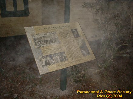 We started our long walk back to the car down the dirt road again hearing the same gnawing sounds. We did not run into any big cats here perhaps we are lucky we did not since this area is quite secluded. I then took some photos of the front side and reached my hand out to one of the entities I could feel it touch my hand. Eventually I felt it go behind me and Tammy felt it just standing there as well. For a while I worked with the ghost surrounding the sign to the Gamble Place. I wanted to bring you photos of an entity near the sign it just helps perhaps to show how haunted this place was so we did spent a lot of time at the main gates.