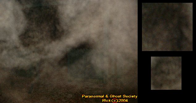 We ended up backtracking and came to a gate near the road with a dirt road leading somewhere in the heart of the woods. Tammy and I walked it and it was very very cold. I was freezing to death and right away I caught something in my flash it looked like a giant face coming right at us in the brief view of it.