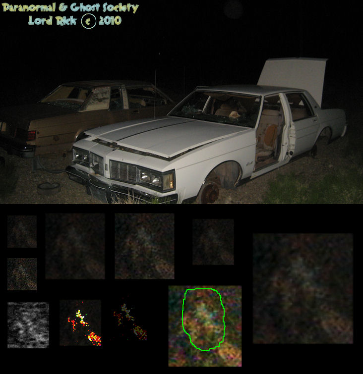 This is the second apparition caught in the backseat of the vehicle and as you can also see they are two seperate photographs taken that revealed something. I will not assume anything but their is a possbility that their may be some bodies buried on site maybe of the miners or something more sinister. Your dealing with a very remote area that sits nestled up between some hills anything can be back here. _
