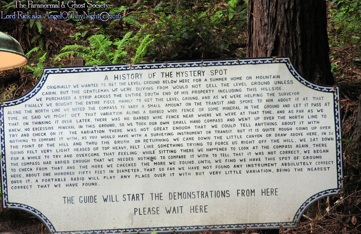 entire south end of his property, including this hillside. Let me at least try to explain The Mystery Spot a bit better for our viewers at least the Illusion explanation. The Mystery Spot is a gravity hill or rather a tilt induced visual illusion much like Spook Hill in Florida that we visited many years ago. Since then I been to quite a few of them and of course wanted to add The Mystery Spot to my list. Anyhow, the illusion often experienced by visitors results from an oddly tilted environment as well as standing on a tilted floor to begin with. Inside the small cabin of the tilted room there are misperceptions of the height and orientation of the objects occurring. So for example when people stand outside on level ground the slant of the building the background causes misperceptions as humans judge the height of the people using the slant of the roof rather then the true horizon. This might make folks look as if they are shrinking or even taller for example. It still does not explain the radiation or the fact some people feel dizzy here perhaps what were actually dealing with is a leyline. When Prather was surveying the land to build a summer home he had no idea of what would become of this attraction. At the time he just thought strange forces were at work especially after the compasses were showing variations. He thought at the time it was caused by ground metals or minerals or maybe a barbed wire fencing causing these fluctuations. When they realized that they could not explain this phenomena they narrowed it down to this 150 foot area so it was indeed concentrated. Since then The Mystery Spot has been in comic books, magazines, books, movies and newspapers for decades. While this may be an illusion this is what people experience while visiting here A. People who enter the spot seem to grow or shrink as much as 8 inches B. Billiard Balls roll up hill C. Pendulums are harder to move to the west compared to the east D. People stand at odd and sometimes extreme angles without falling yet it looks as if they are falling and E. Objects without momentum fall at angles rather then straight down. Then you have those who experience being lightheaded while others felt forces pushing them. I also read their are excessive amounts of CO2 at the spot which causes light to refract in the same manner as viewing objects through water. I believe their is a scientific explanation for those who are dizzy perhaps to much CO2 intake or its cause being related to the radiation. The funny thing about all of this is that Prathers Cabin slid downhill into a stand of redwoods. Originally he did not build his cabin in the middle of the spot it kind of just fell into place. But when surveying the parcel Prather found out that his measurements were off by as much as 30 degrees. In 1943 a H.G. Hubbard stated in his 39th Report of the State Mineralogist that the phenomenon is a marked refraction of light rays in a small area caused by the density of the differential between air and carbon dioxide gas and the normal atmosphere in the region. He put into his report that the carbon dioxide seeped through the fissures attributed to an earthquake or a landslide. Perhaps the same landslide which caused Prathers Cabin to slide down the hill and end up in the grove of redwoods where it sits today. Their are guides that can do demonstrations here one guide I read about told some tourist that this area was hit by a meteor which fell leaving behind a magic circle. Although I do not believe in magic I believe in science thus if a small crater was left behind it might cause an electromagnetic fluctuation. But the guide said that birds and animals refuse to live near the Mystery Spot because the electromagnetic energy seems to scare them off. I am not sure how true this is but when I was hiking around on my first walk through I seen quite a few birds and other wildlife species fairly close to the hill where the Mystery Spot resides. The Oregon Vortex is very similar to The Mystery Spot however it was caused by a deposit of gravity field affection rock. Those effects are light is distorted, compasses refuse to work properly, electricity is influences, objects are pulled toward the center of an area and paper scraps thrown up in the air tend to spiral downward as they fall. Their are many other similar sites some of you may have been to them such as Spook Hill in Florida, Confusion Hill in California, Camp Burch in Colorado, Snowdon Mountain in the UK and perhaps many more. A UC Berkeley psychology professor named Arthur Shimamura and his associate William Prinzmetal reported at the annual meeting of the American Psychological Association in 1998 that the Mystery Spot is nothing more then a mere perpetual illusion where gravity actually never changes. What changes they claimed is your visual environment where everything is simply tilted and not to ruin it for anyone but while were a paranormal site I also work hard at trying to unmask fortean and strange sites. Perhaps so we can better understand them using science rather then assuming this has anything to do with the paranormal. In the psychologists research they found that when peoples bodies are tilted the illusion created by being in a tilted room is magnified at least three times higher. Prinzmetal also said that saying its a visual illusion doesn't detract from the amazing experience someone can receive from visiting The Mystery Spot and that despite that it can be explained it still is no less very strange! Their was once an issue in OMNI in 1981 with an article written by psychologist Ray Hyman who came up with a stranger theory that this is a vortices site. But he also did not deny that it was an architectural funhouse filled with corners in the cabin that were not squared, horizons that were not level and walls that were not vertical. In turn this created a series of optical illusions that made it seem as if gravity was being violated right and left. While some folks h