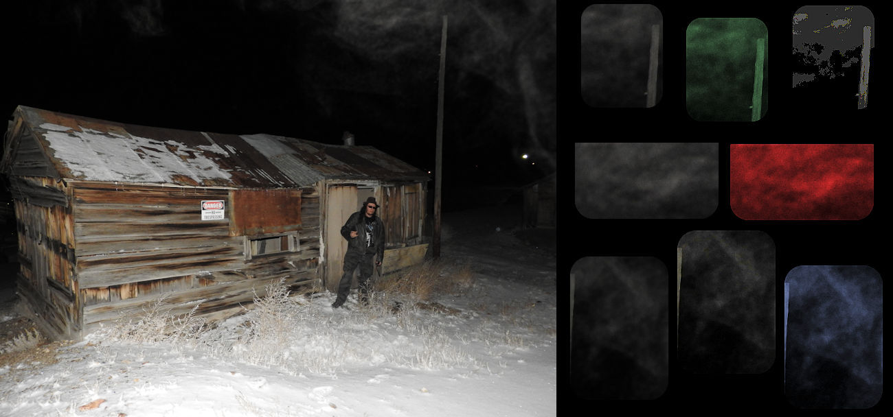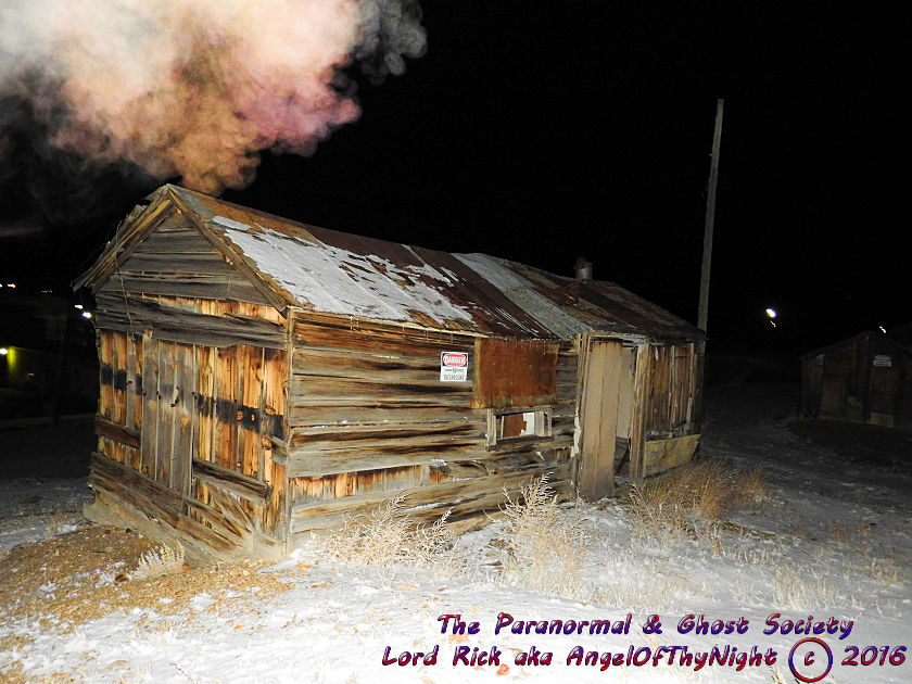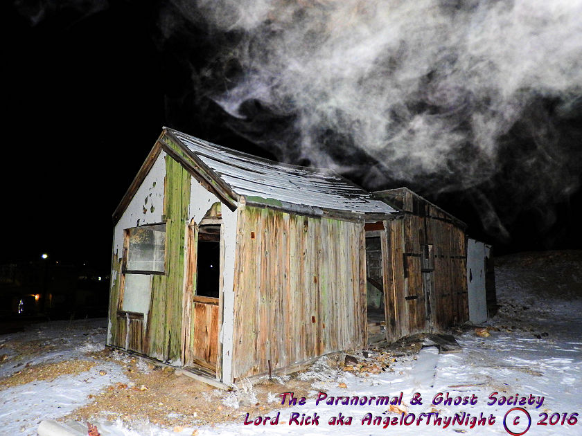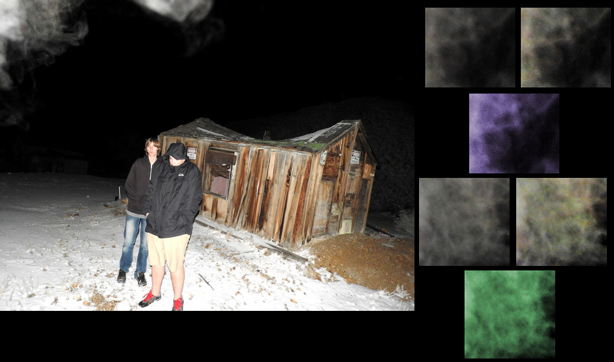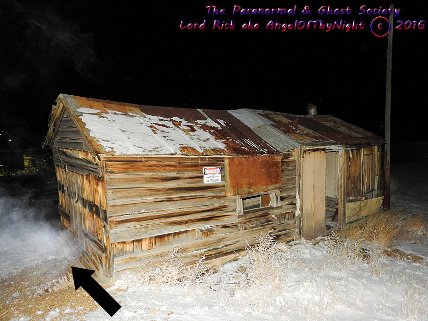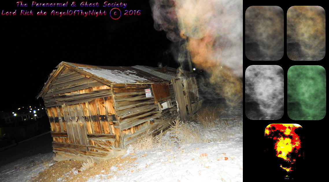 ![]() This mass of ectoplasm around me may not look like much but enlarged and studied I was able to pull three seperate entities within it. This is an abandoned miners cabin its very old and original probably haunted to because the people that lived in such cabins were miners who some ended up dying in the Belmont Tonopah Mine Fire which killed many men who are not buried at the cemetery just up the road. |