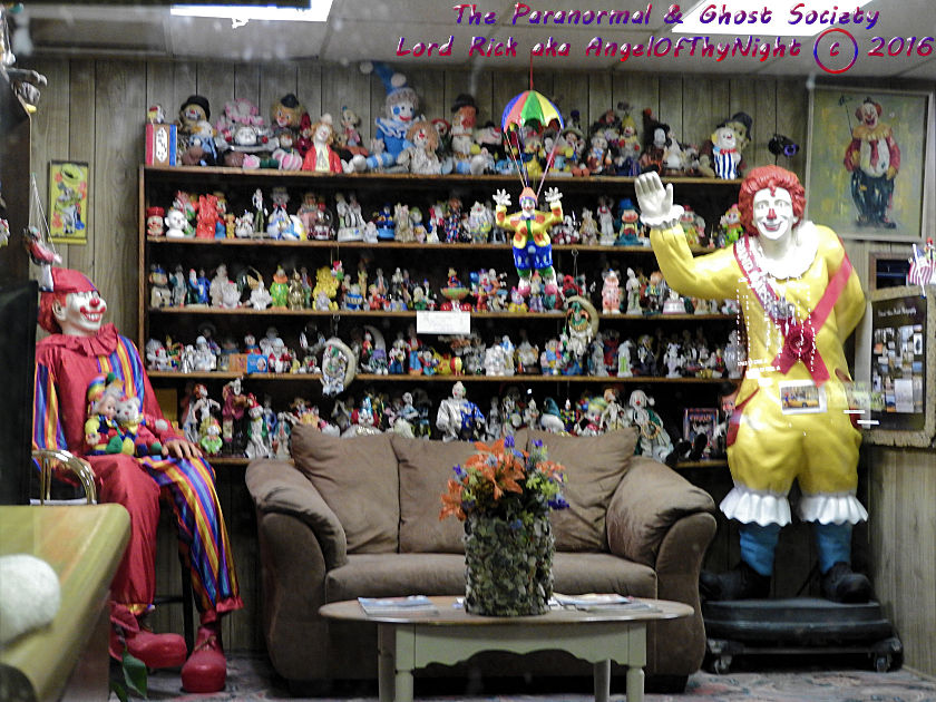 | While Tonopah may be one of the most haunted towns in Nevada it is also one of the strangest. These photos were taken at the Clown Motel which show Ronald McDonald looking at me through the window and many cats gathering outside my room. The Clown Motel resides next to the old Tonopah Cemetery and during our stay at the motel we heard these giant laughs coming from the room next door despite nobody was staying there. The cats are probably left behind from other guest who dump them off here but no less to open the door and find three of them staring at me in the eyes caught me off guard. The Clown Motel is not only haunted but folks have been chased by clowns especially some who have entered the cemetery. I have heard some of the rooms also have strange ghostly activity. While my experienced were minimal the cats, strange clown laughs and ghosts we encountered at the cemetery next to the motel were all very real! |