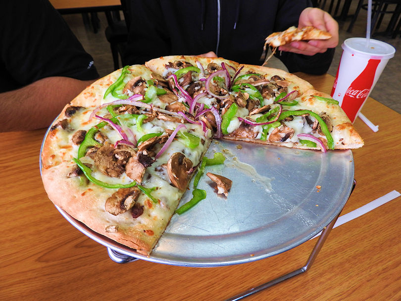 | When we arrived in Tonopah later in the morning we drove through white out conditions for a few hours it was intense and dangerous not a vehicle on the road but a few large tractor trailers. We were all hungry, cold, tired because we just had gotten done exploring the outskirts of Tonopah in deep snow and another location prior to it known as Coaldale Junction an abandoned hotel and restaurant. It was still snowing out and we decided to have lunch at Hometown Pizza before we would check on in to the Clown Motel. This was a boys trip for sure I brought my son Jarrod who was in Tonopah with me a week prior along with my older son Richard and his friend Devin. This was a fun trip but the real investigation would start up later at night once the sun had fallen we would be ready to take on the cemetery and many abandoned miner cabins. The pizzas were awesome one had onions, peppers and mushrooms the other chicken smothered in cheese. Like I said the best pizza in 100 miles and only pizza probably lol. I ate Hometown Pizza twice in one week if that says anything! |
