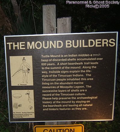 The Cape Canaveral Seashore is full of many different Indian mounds, sand dunes, wildlife, islands, swamps, hammocks, pine flatwoods forest, lagoons, salt marshes, and many different forms of plant life. When I chose to investigate this area it was because I knew that not only was it a place with alot of history it also is a place that anything can hide. When I say anything I mean perhaps something Cryptid. But these islands are not just known for Kennedy Space Center but for Mosquito Lagoon. Imagine walking in this place into a storm of mosquito's flying past you like a blizzard by the 1000s. So this is a very intense place full of danger and adventure. I believe that even the gators here are quite abundant and maybe even some of the largest in the state. Turtle Mound is one the biggest Indian mound in the country and its the tallest one as well. It covers 600 feet of Indian River shoreline, 35,000 cubic yards of oyster shell, and 50 feet in height. It use to be at one time 75 feet in height but erosion has deteriorated its size. The mound is visible for miles offshore which was a tool used for navigation when the Spanish Explored Florida's Coast. The entire mound is covered with scrub bushes and trees. When the Timucuan's inhabited the area the Cacique known as the Chief had a hut on top of it where he could look out into the ocean. One can just imagine the scattered Indian village around this jungle like setting where they would bury there dead by wrapping them layer by layer within the mound. So you can see why we chose to investigate such a prehistoric area. When the Spanish Explorer visited the Cape in 1605 by the name of Alvaro Mexia and called the site Surruque until it got its name Turtle Mound. He reported the natives launching their dugout canoes at the mound's base. Over the years the huge mound began to take the form of a turtle hence how it got its name. The Cape Canaveral Seashore is a 14 mile long narrow stretch of land bordered on one side the Atlantic Ocean and the other side the Mosquito Lagoon Marsh with various islands. One of the islands I recall is named Shipwreck Island so this really gives you the type of area it is not very kind to travelers. When you drive along the sea shore it dead ends at a barrier island which was once the place of a federal house of Refuge for Shipwreck victims. There is also a ghost town somewhere along Cape Canaveral perhaps nothing of it remains its hard to say but we do know that the ghost of these Paleo-Indian Cultures still perhaps thrive along this woodsy stretch of land. The cape was first sighted by Ponce De Leon in 1513 as he searched Florida for treasure, glory and the fountain of youth. He called the cape Cabo De Las Corrietes or Cape Of Currents. Other Spanish explorers called it Canaberal or Canaveral meaning "place of reeds" or "place of cane". In 1848 a 65 foot wooden tower was erected with the keepers being William Carpenter and John Scobie. Eventually it was passed onto Capt. Mills O. Burnham until 1886 when his descendants took over all the way till 1952. The tower was not very tall and many ships out