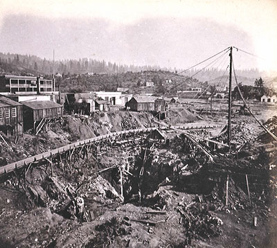 The photos you are viewing below do not belong to me they were collected using a variety of sources through articles, library and websites. I do not get paid to host the material it is however used to further educate others such as public schools on the history of western history. So please feel free to enjoy them by viewing them as you can see the town has altered greatly from the 1800's to present days. However back in the day it was a bustling city and the mines were monolithic in size therefore wiping out the nearby forest surrounding this valley. Even the creek was massive and the town had a swimming pool. Today the creek barely flows and where the town pool once resided is the Volcano Park so many changes over the past 160+ years! The only thing that has not changed is that early morning fog that appears to be hovering over the valley. But some of what you see in these photos still stands while other places have long since been forgotten due to fires or are now in ruins due to the elements of time.