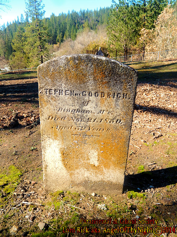 This is the first interment buried within this cemetery a man by the name of Stephen Goodrich who died in 1850. His wife is buried not to far away her grave is found on the main page below one of the many notable burials found here in the region who made Volcano what it is today!