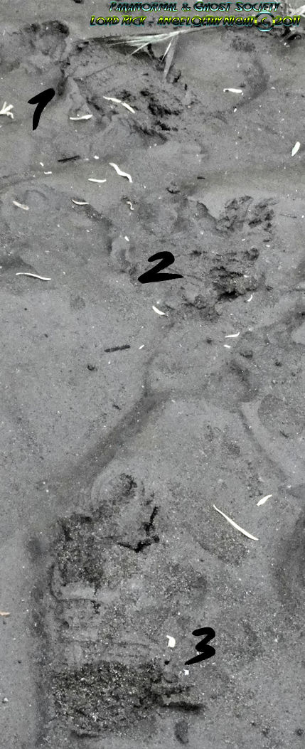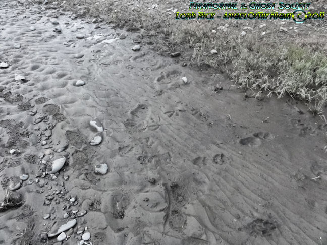 Nothing paranormal here just a big dog print maybe even a wolf in the area as it was found close to the river. Now if you compare some of the other tracks with this dog one you will see they are entirely different. Dogs have pads on their feet which can be seen in this photo. There claws are not very log more elongated and stubby unlike in some of the other exhibits where the claws are very thick as well as much longer. This track is KNOWN!