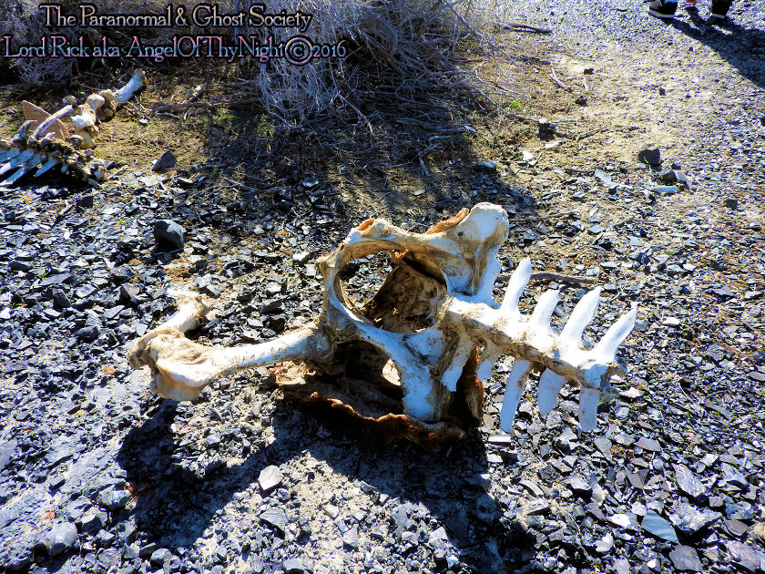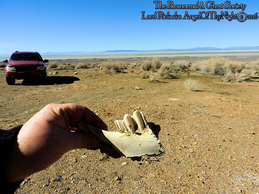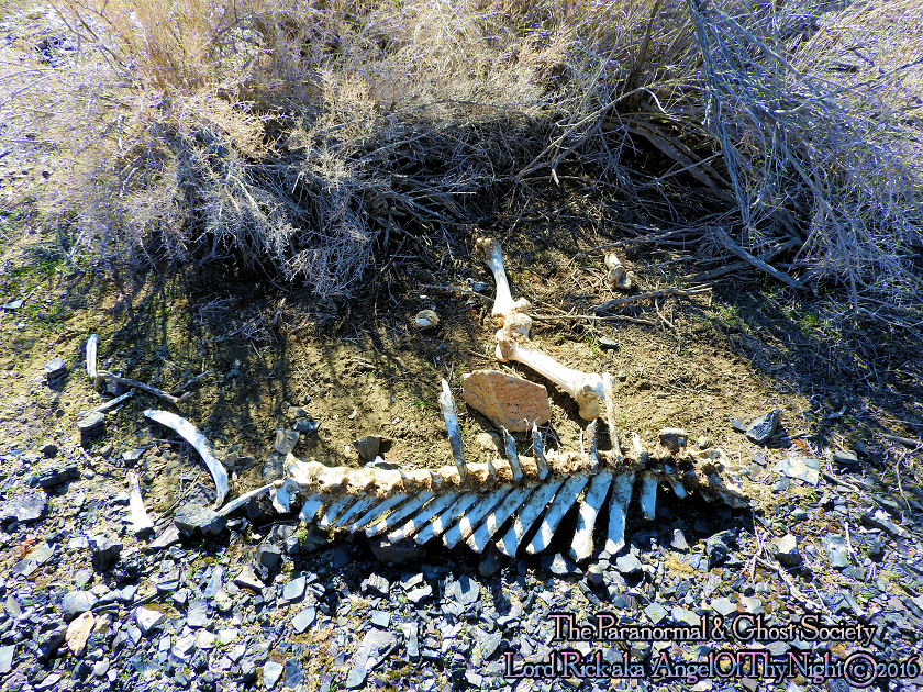 | While this is nothing more then the laws of nature it is something you will find often which is death in the desert where water is scarce and the elements are harsh. It is a free range throughout Nevada so this means wild horses and cattle have allot of freedom to journey. Sometimes these cattle and wild horses make it up to a ghost town like White Cloud City looking for food perhaps water ending up meeting their demise. Other times mountain lions will come down off the range or down from the rugged canyons to hunt. Either way all that eventually remains in a short time is bones reminding us once in awhile that life on the range is not always so easy and even if it appears beautiful the truth is death is imminent. Also Tammy is holding a rock in her hands but its know normal rock or mineral. The sample we took came from a large burnt circular area on the ground that may have been caused by a lightening strike or meteor strike. I also wanted to add that a buddy of mine has a son who does allot of hunting and one day he was out hiking the Stillwater Range when he seen a pack of mountain lions hunting together. Mountain Lions do not hunt in packs but for some reason they often do it here within the Stillwater Range which boast the canyon where White Cloud City is found. Beyond the canyon is open desert a region known as the Carson Sink which is harsh but food and water also very scarce therefore life is not paradise here and that is why locations like White Cloud City end up going from boom to bust! |