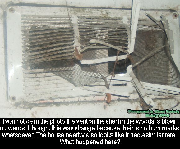 Subj: [ParanormalFlorida] Last Night's Investigation Report Date: 4/24/2005 10:42:03 PM Eastern Daylight Time From: AngelOfThyNight@aol.com To: ParanormalBuffalo@yahoogroups.com, paranormalghostsociety@yahoogroups.com, Paranormalflorida@yahoogroups.com, ParanormalGhostSociety@groups.msn.com CC: parapackboy@hotmail.com, rasolas@gmail.com, pits_of_twisted_roots@yahoo.com The Witches House We had to drive down a dark swampy road to get to the house but thanks to Amanda she gave me some pretty good directions to find this place. We parked outside this hilly driveway with these wood pillars and metal rope blocking it. We walked on up the driveway which was very overgrown until I seen a white wall. I knew this had to be it and when I walked on up to this house it was what it was a big twisted pile of metal roofing, wood frames, a few walls and debris. It looked like the house was blown to pieces by some force of nature and I spent a good deal of time climbing on the rubble. It was pretty rough climbing because some of the roofing wanted to give I remember stepping down on some metal roofing and it just gave way. But nothing was out of the ordinary here although their was alot of energy as Lee described it their was no discomfort or even feelings of being watched. We then walked out and followed the driveway and came back to the house again. I felt we were missing something so I backtracked and found a little shack hidden in the woods. The guys said it could be a chicken coop but to me it looked like maybe part of a laundry shack. Their was some beer bottles and spray paint around here. One of the vents on the outside of this structure looked blown out similar to the condition of the house debris. What happened here that was my question? I smelled a perfume in the general area but angel smelled a heavy urine odor maybe from an animal its hard to say but it really struck me as odd. I took off and went up a hill hoping to find other interesting structures in the woods but instead it became real cold and I captured some ectoplasm. It was not a very advanced manifestation just what it was some energy and perhaps my only Ecto shots of the evening. But everybody felt how cold it was in this area. Maybe at one time some other structure stood here its hard to say that was my impression. Lee said that if you were to look up the hill a certain way he could see how you could perceive how you could see a phantom house. We then went back to the rubble I felt like I was missing something but it was getting late roughly 5am so it was time to head on home we were all so tired from hiking miles in the woods. We fooled around at the entrance taking a few photos joking around as Lee stood up on one of the wood pillars. Eventually we got into the car and went down the road and ended up back on that road we walked on. I drove fairly slow cause I seen alot of animals running around. Then Angel, Lee and Aaron got fairly excited because they seen a lady in a blue stress standing behind a guard rail near the swamp. I thought this was odd they said she was smoking and I caught her out of the corner of my eye but I did not actually see her it was more like I seen her with my third eye without having to look. I told the team I think it was a ghost but they were convinced this was a real person. But lets face it their was no houses just swampland and woods in this area of the road. I stopped and was getting ready to put it in reverse. I at first felt maybe this girl was hurt or left on the road I had no idea why a lady by herself would be on the side of the road like this. But imagine going down a woodsy road in the middle of nowhere and just seeing a person standing their looking at your car that would kind of make you wonder. I did not stop but their are alot of stories of disappearances in this area especially the one about the husband and wife who broke down never to be found again. So was it a ghost? Was it the owner of the Witches House playing with us? Or was it just a crazy woman on the side of the road standing near the swamp? So definitely this added a chilling ending to a great night of investigations. In conclusion to the report we had many different types of activity between being followed, cold spots, strange noises, wild animals, giant bats, to even ghostly. Keep in mind what we do here is very serious alot of risk are involved when you are in the woods or swamp. Their are alot of entities and creatures out their that can physically hurt or kill you so in some ways we are fortunate to have such a solid team of investigators. In some aspects you learn that being scared of what you do not know can hurt you more then help you. If you do not investigate what it is that is perhaps out their you may never understand what it is your dealing with. But as much fun as we have we also try and take a logical approach you learn to know what an animal sounds like, what a bird in a tree is, an owl hooting, a deer rustling around etc etc Sometimes when you approach a place you have to look at it for what it is for example; the Fairchild Oak is just a very old tree just as a simple trail in the woods is a place where animals roam and you can hike through. What makes the difference with these places is that some of them are haunted or have occurrences we cannot explain. Remember something safety comes in numbers and sure we get new investigators who are scared and quit. But remember that its not the paranormal that hurts people most of the time it is people that hurt people. With all rational decisions the paranormal has its rewards just as the Bulow Plantation and its woods had all kinds of activity or like the lady in the Blue Dress standing on the side of the road watching us drive by. These are experiences you never forget but with experiences comes a higher degree of knowledge which eliminates your fear. I will be honest and be the first to tell you we did not capture many paranormal photos at these places. But they were