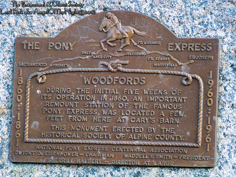 In March of 2011 during my journeys into the Sierras in search of Bigfoot I had found that a portion of the old Pony Express runs right through the community of the Woodford's. I remember driving my truck around trying to find remnants, trails and historical sites. I also remember standing by a Pony Express sign with a big grin on my face. When I relocated out west this was the type of journeys I had in mind as being able to chase ghosts and Bigfoot in the mountains adds diversity . Little did I know I would ever visit such a site years later in my paranormal career.