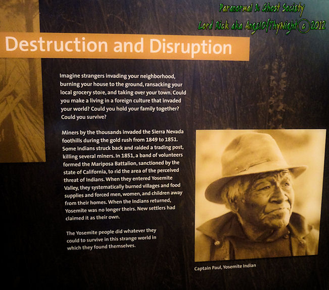 Their were many non paranormal forces at work as well in the development of Yosemite and the land even today is forever changing or should I say transforming. Some of the tallest mountain peaks in the United States reside here alone its sheer cliffs are enough to turn away an adventurer. Perhaps this is what makes this land so alluring is that their are places man has not ever been to making it a hot spot for Bigfoot activity. Not to mention the fact that the region has over 7000 years of Native American history. These tribes at times were at war with one another just as they lived and they died in the valley leaving only their ghosts behind.