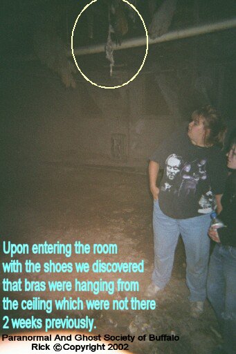 AngelOfThyNight@aol.com Well we are all back safely so yeah i guess tomorrow ill be celebrating when i throw my sons birthday party. Its 5am so i hope this report sounds good i'm beat 3 days straight of walks, investigations and then tonight the asylum and tomorrow a picnic then a party i'm throwing lol wow i say. Well i am very happy to see so many show hats off to Jeff, Amy, Tommy, Kim, Ari, Arian, and well not to me of course lol but it was a good show. Indeed the place is as foreboding as last night i was fairly relaxed going there as i knew the rooms and hallways much better. As a few weeks ago we had an incident where some members called when i was offline about a particular room we found well they did cement and cinder block our way in so Jeff and i found a new way in we all found a basement boarded doorway that we were able to slide into most interesting we managed to get into the catacombs Jeff's saw ran out of batteries lol so Tommy, Jeff and i managed to use our legs and get in. I must say its very amazing a whole underground network all lit up like being a mine one pass way which was very intimidating was a dead end, another 2 were lit fresh doors probably leading to patient rooms in the asylum which are said to exist there with torture equipment. but we found a ladder going down into a network of pipes we followed it for quite some ways and when i turned the corner to my surprised i seen a man all dressed in white he sort of looked like an orderly but had the old hat on, suspenders and he was working due to us having a large group i really didn't want to be seen so we pretty much got out of that area. The man was carrying a large crate full of stuff and i honestly do not know if it was a ghost or person but kind of strange to see a person working that deep down 1am in 110 degrees where the pipes are hot with steam and was dressed in winter dress wear so i'm not sure what to think. But we got out of there and made it into one of the first floor wards and to my surprise i had heard a female scream then 10 minutes later what sounded like a man then the pounding of wood we shut of our lights that's when we heard running on the floor above us so we ended up hiding in the basement for awhile and of course as us being investigators let our curiosity take its course. There was a interesting hallway with wheel chairs all over, a door way which once was cinder blocked and bolted was ripped apart and crushed we were able to get into this new area it was freshly painted, insulated, etc i definitely sensed something there every time i asked it for a sign you would hear a banging inside a room with a locked door then a flicker of some light near the ceiling there was an area that was insulated with some wood on it as if they are trying to patch up some of the rooms, walls etc very unusual though i heard like footsteps in the room, a cracking sound in the room, just seemed to be alot of activity there like if i knocked on the one wall it would push or knock back. Then of course there was an area that i got very ill i cant explain it but it was gone when i got away from it so i'm not sure if that's just residue i was dealing with. other key points were we had about 5 flashlights with us and all of ours died and Jeff's was even starting to blink out a little so something definitely was feeding off our energy. I did hear alot of things like a pipe banging, a few screams, running things of that sort i very much doubt anybody was in there since now its even harder to get in. There was a party across the street at the college dorm however what i heard was coming within the building from other floors since the place sound echoes in. We finally on our way out managed to stop in the room with the shoes and clothing strangely enough the closets we were going to look in were open, another closet had the plastic fitting for a skirt, and 5 bras hanging off the ceiling which they were not there last time we were there 2 weeks ago, also we found many homemade bows made out of plastic baggies granted we did investigate there was no bones in any of the closets, pile of papers or anything there was bras hanging very old and rotting but all in a row which lets say its unusual that they were not there a couple weeks ago i mean who would take the time to go in there and hang each one up ya know but i made sure i took tons of photos of that room just to see if they match up with other cameras i used. we ended the night hearing it thunder and lightening out found our way out eventually and managed to get out safely. It was alot of fun and i'm sure next year will be returning here to get camera footage etc i thank everyone who showed it takes alot of balls to go into a 160 yr old asylum believe me and it was nice meeting 2 more members of my group tonight. next week Jeff and i will be venturing out past Jamestown to check into some vortexes, and possible bigfoot activity. we have room for 2 people to come along so if you want to go Saturday till Sunday morning please write me and let me know so i can get an idea will be hiking up in the woods at night and find an area and make a wire perimeter ect it will be fun, interesting and you get a chance to get away from buffalo:) |