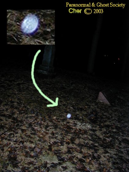 It was a warm night...50 degrees, balmy, so that would rule out any "fog" The group split up in the cemetery, and each got his or her own pictures. You could feel cold spots, and that is where I took my pictures. I captured an orb, and a ghostly form or two right next to a tombstone. My camera died just as we were about to leave. Rick has mentioned before that ghosts will drain your batteries, so you always need to carry extra!