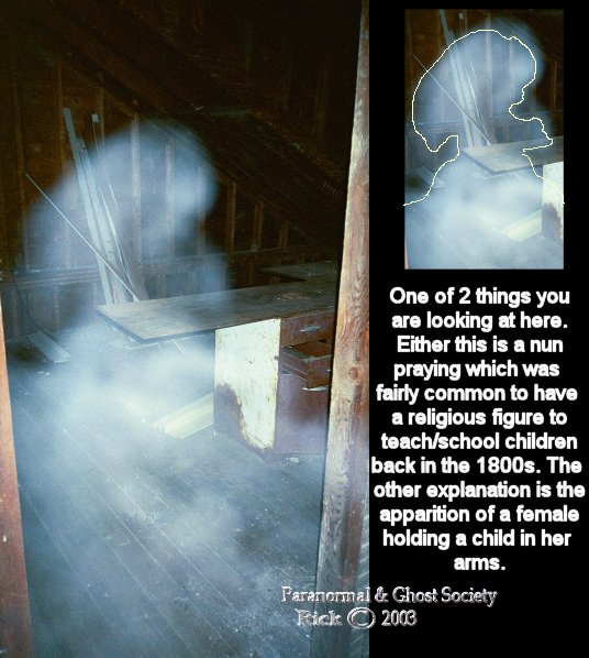furniture possibly from the castle. Such as old beds, desk, tables pretty interesting. We then checked out another old house right near the castle this one was a challenge to get in considering half of the stairwell was gone but we got in and the rooms were very large and the vibes were high and I did capture something in this house on my digital camera. We then hiked a ways up the hill and found a large house all wood probably one of the oldest this is where things get interesting. About half way to it Pete and I discovered footprints they were that of a