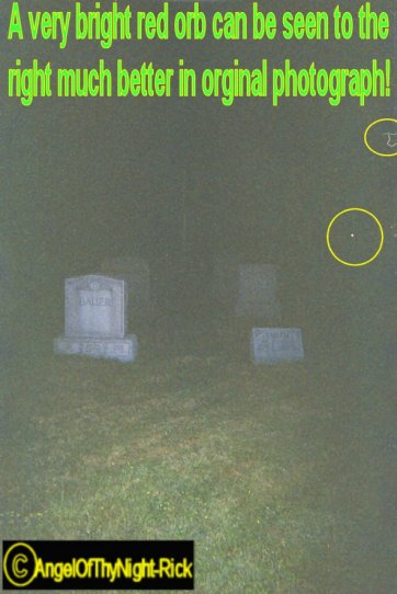 From: Rick Subject: Tonight's Report In the Ridge Lawn Cemetery Date: Sat Jul 20, 2002 Reply-to: ParanormalBuffalo@yahoogroups.com To: ParanormalBuffalo@yahoogroups.com Yes i am back from the 3 hour cemetery trip at Ridge lawn cemetery on Harlem road. This was a very interesting cemetery walkthrough simply because there is 5 different cemeteries all near eachother 2 side by side another across the street then another near that. We did not experience hardly any activity however there was a cold spot at one time that rushed passed me; almost like what was at the cemetery was peaceful but curious. For sure we had some experiences with bats lol sorry ladies:)~ i know how much women don't like bats flying around your heads he he. I do not know what will show up it will take me time to develop the film i brought 2 cameras one camera is a digital but it don't work right with my computer so i will have to upload the photos from a friends house tomorrow. I wont know if i got any orbs or anything till later on but if something comes up it will be posted in the members sections named ridge lawn cemetery. I chose this tour tonight and walkthrough to build up confidence for the local people. Tonight was about meeting people more or less not so much finding the devil himself lol simply because the last 3 weeks i have not had many go with me on these things. Jeff and i went he will post his experience Monday this is his second investigation with me thank you Jeff. However honestly i am disappointed at the ones who have stood me up this is a very serious thing what we do here even though i love to have fun and joke around have a beer and talk; people that said they would go and didn't show up, or didn't call me back, or have stood me up more then once isn't a very nice thing to do. That in itself shows me i cannot trust you for some of the more intense investigations i have planned in the next 2 years. I am not some ax murderer this is the 3rd investigation i have ran, i have 3 small little boys at home and anyone who goes is going to be safe with me. But people got to learn to trust and they got to meet me half way. If you wont meet at my house or a public place then how do you expect to go. If you wont give me a phone number or call me how do you expect to make plans? So all i'm asking is your volunteers efforts and 100 percent and of course this goes for all the people who probably live 10 minutes from my house. I wouldn't expect any member to go alone into a haunted house or abandoned building or a forest where bigfoot may have you for dinner and you shouldn't expect me to. I work very hard to go out take photos ect We work as a team to share info, go to these haunted sites to learn and to discover. The more people the more pictures the more stories we have to share. Tonight all in all it was peaceful but rather interesting still to explore a graveyard that was so large in size. I mean its interesting how i can sense one thing at the train station then see a difference in the cemetery that is probably why i wanted so many people to go so they can see the difference in activity. As for the people in my group that are out of state or in different areas you all are doing a great job researching, participating, and even informing me of different things. especially Kim good job up in Utica:) I am not sure yet but i may plan a trip up to Dudley town i know its about 6 hours from buffalo but this would probably be next summer some weekend. If anyone read about the Dudley town post. I will now post about the next 2 weeks of events that are going to occur here i would like everybody to go ahead and read them if you want to come along with me. I may have the locals get together maybe during the day at like pizza hut or somewhere because there is alot of shy people who are really afraid to out and say hey Rick i want to go so this might help over come it i don't know. But anyhow there will be many other investigations in the future for the rest of the summer, then maybe the fall a few, then in the next few years. The cemetery was pretty fun tonight yes Jeff will wait for the bigfoot report in the newspaper tomorrow lol. I am sure whoever was driving down the road and seen 2 men run super fast into some hedged into the graveyard freaked out haha haha. I can see it now bigfoot runs into ridge lawn cemetery with tattoos and long hair haha. Peace and blessings everyone. Rick