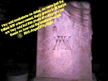 Well tonight was a quiet night I cant say we experienced a a whole lot my cameras batteries ran out so I couldn't take Pics but ill be going up there many more times even during the week with anyone to see if we can see or hear something. I can say that there were a few distinct and interesting things. For one when we first entered into the tunnel and I don't know if this was meant for me but I seen an arm it looked like the arm of a older person it was very transparent if you look where it says hell in trays photos below it is where I seen it. It was pretty startling since i'm almost sure what it was I don't know if it was a residual thing or maybe something luring us in deeper for what reason who knows. No cold spots in dead mans tunnel but there was a time when we stopped to talk or rest actually switch positions walking and I heard something deeper into the tunnel I cannot pinpoint the sound it wasn't a rat because they scatter it was loud sort of like something else maybe walking in the distance because the echoes came back to us. I also noticed in the tunnel where it says hell a bunch of railroad spikes piled in there Tracy and I did not see them last week so was this a spirit trying to tell us stay out or maybe seduce us to go in further. I got to say john Edward says that its the little things you got to notice because its a way for the spirit to validate that its there and this is true. A week ago the tunnel had stacked wood then the railroad spikes, then that face or large orb we captured last week its really hard to say. my friend doesn't talk much about that place since he use to go up there a lot as a kid. The cemetery was a dead cell tonight no movement in the trees or on the tracks I thought I seen something move quickly and again I could be wrong I usually have to focus and trains going by ruin that. As far as the whistling Jeff whistled and a tune and i'm almost sure that it whistled a part of that tune back very far off and all there was also one area that was ice cold. I think tonight was a omen to stay out Tracy dropped her camera in the water then the flash light I believe or her pack fell of and me seeing that arm and hand I mean its these things that are warnings we got to look at. I really want to thank Jeff and Tracy for coming along again you guys are great. Its nice to have people to go along and do these things. I am looking to expand the investigations to further areas or more intense haunted areas cemeteries are good for orb photos ect. I have been noticing strange activity around my house to not so much in it just outside of it i'm not sure yet if what was at St Mary's followed me home but ill say this there are spirits wherever we go and its not always what you see, heart, feel ect sometimes its what the camera captures an some things are only meant for certain people to see tonight again though I did see something strange it was 10 feet in front and not hard to miss I don't know but I been trying to piece this all together like a puzzle, seeing an arm, then the singing man last week, the black figure, the rolling down the tracks, then the rail road spikes what does it all mean we may never know. However St Mary's i'm sure is hot and cold like any cemetery I may have to go up there 40 more times to see another black figure who knows but its not going anywhere and either is what roams there. Notice above to the upper left the demonic face this tunnel really makes my hairs stand up.