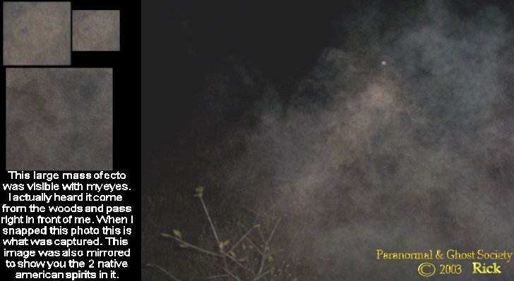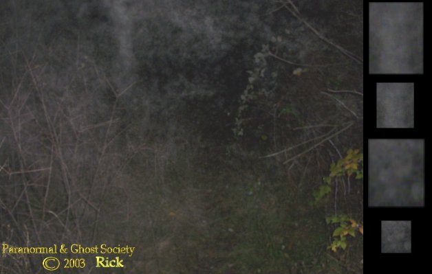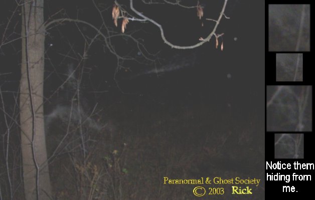 I do have to agree it was a very strong presence. We then hiked up the hill and along a very wooded path filled with brush. I could feel something the deeper we went in and sure enough I captured a few children apparitions back on the path. Some of the photos back here I caught are beautiful and I did show them to the group so they could see the type of ghost that haunt this property. After that it was all paranormal activity from my first apparition. Noises, strange sounds, I thought a few times I seen figures just standing there watching me.