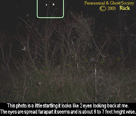 every time I go they are good to me as far as the photo that I take of them. If I had more time I would set up cameras there and work with it more so I am planning a return visit there before I move out of the area. I did capture something else tonight weird on film 2 sets of large eyes looking at me through a tree and trust me it is no animal it something very large with very big eyes. So yes a visit to this place was perfect as this was Leeza's first investigation with our group. Then we headed off to our next destination.
