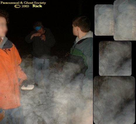 EMF detector did not go off at first but then we got some high readings and I snapped about 3-5 shots of the group surrounding by a mass of entities. The