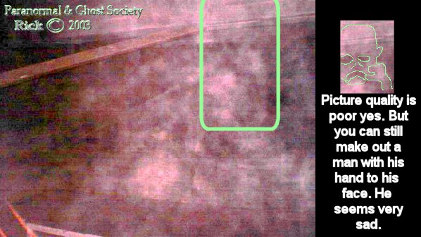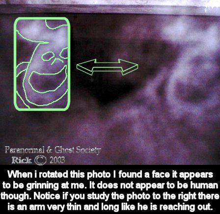 Subj: [ParanormalBuffalo] Other Report Of The Grain Elevators..... Date: 2/9/03 1:02:50 PM Eastern Standard Time From: AngelOfThyNight@aol.com Reply-to: ParanormalBuffalo@yahoogroups.com The grain elevators last night near the Aquarama proved to be a very worthwhile trip to check out. Pete and I entered them around midnight. We walked all around them and to be honest with you I cannot even describe the size of these monolithic structures. You got buildings attached to the grain elevators and buildings way up on top of them to. Near these grain elevators we ventured into there are about 4 others like this within a mile or 2 away some 3 times the size of the ones I went in last night and some very dangerous and collapsing. However we managed to get in now keep in mind that grain elevators were a booming business over 50 years ago this one has been closed for over 40 years. As we stepped in both Pete and I got that feeling like get out you don't belong here. Last time we stepped in there we pretty much got in and out this time we spent alot more time taking photos and having a look around. We started off by looking into the machine room with its large cogs a very rusted stairwell going up which we did not even manage to go up. Then we the further we went the more slipper the ice got and we did notice it was snowing inside. We explored 2 more rooms dead end ones alot of the old supplies rusted and left behind remnants of the past. Those rooms seemed to bother me a little almost like we had something in the room or behind us perhaps trapping us in just an overwhelming feeling. We then made our way to back noticing dozens of pillars through out them. What was really neat is being able to look up the silos itself when shining your flash light. Then we made our way back getting lost in dozens of boats being stored there. About half way back we heard a voice i could not make it out but it sounded like it shouted at us and it sounded close by we froze. To the left of us there was a plastic sheet of wrap something you would cover your motor on your boat with. That started to violently shake. I know the winds outside on the lake were 30-40 mph so its possibly that an air current made its way inside. But the whole time we were there this did not occur and that was odd since the wind was constant on lake Erie. This is right after we heard the voice keep in mind. After it stopped it sounded like something stepped down near the plastic wrapping it was sort of a cracking sound. Keep in mind a sheet of covers the flooring inside these grain elevators and when we walked on it there was a crack every time. So i definitely then knew something was there with us. We took a few photos as we made our way out Pete and I pretty much stuck with our digitals for this since the whole place is made of concrete. When we got home I looked at his photos and one of his last ones has the face of a man you can see the ear, mouth, eye and he seems to be bald. I did look at my photos as well and I seem to have a variety of different apparitions in them some photos came out great some did not but from what I can see is no matter what area I went to I caught something there most of them look pretty pissed or lost. Keep in mind rumor has it that before boats would be stored here they were dumping grounds for murder victims, plus I am sure workers fell and had accidents over the years in them. All in all it was a interesting night. The only thing that was a low point was my cheeks and ears freezing as we walked to the grain elevators itself right near the lake. Pete and I found some more grain elevators we will check out in near future also a abandoned restaurant haunted by a civil war ghost which we will look into next week. We did take a ride by the newly parked ship docked by general mills this one will be a tough one to get into since its owned by them and open 24 hours a day but all good things come in time. peace Rick The photos below are all of ghostly faces and figures some are hard to see unless you study them for a little bit. You will see eyes, noses, mouths on most of them. In 2 of the photos in different places I caught the same faces.