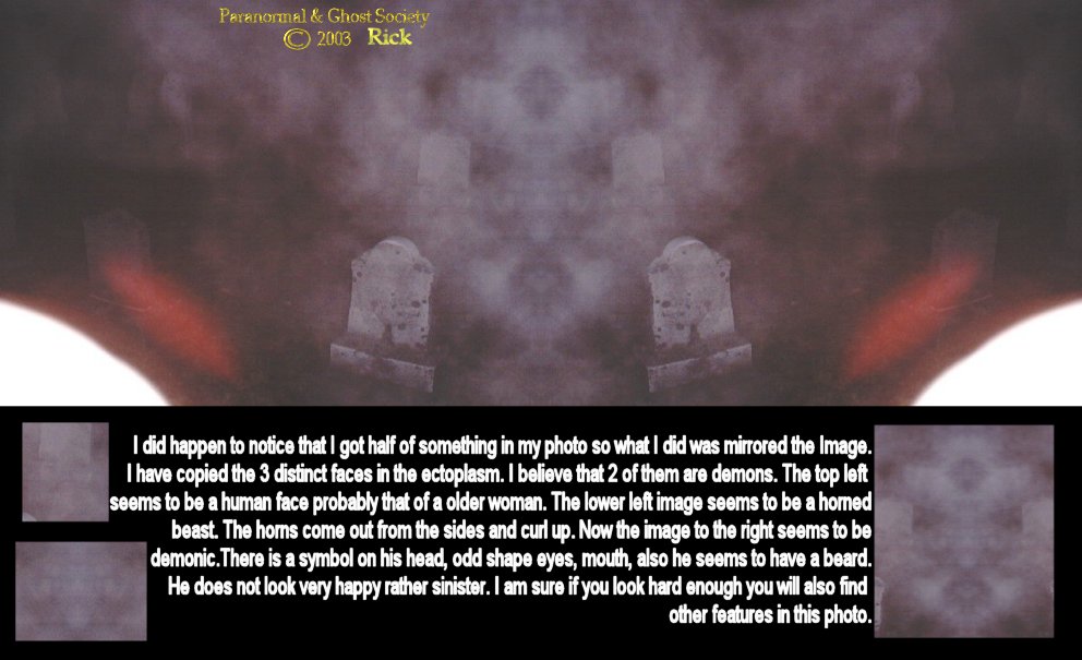 a lot of vibes I felt as if we were being followed I am 100 percent certain I heard footsteps a few times mainly towards the back of this cemetery. I did look on the digital and I have to admit almost every phone has ectoplasm and 2 pictures seem to have faces which tells me right there for such a small cemetery the activity is beyond what I expected. There were a few noises I could not explain like a branch breaking near by us on the ground, a foot step a few feet away. Kelly felt something there as well. Most cemeteries I go to feel peaceful however this one you could just feel a difference like we were being watched. I feel that this place will be investigated many more times in the future based on what I got in the photos tonight there seems to be more then one ghost in this old cemetery.