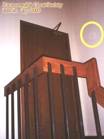 Yesterday evening my son and I conducted our own investigation of the church he has his cub scout meetings at. Since we had it to ourselves we decided it would be a great time to take some photos and look around. For a long time i could feel something was in this church just most likely happy or just quiet observing others. Since there is alot of people who attend churches the activity would be very mild unlike a place nobody has been in for years inhabited by many ghost. We roamed all 3 floors of the school some rooms were pitch black, one room we opened up a door and got a very nice cold blast like possibly and orb or orbs scattered and left the room. We then when to the upper level of the sanctuary which over looks the alter, pews, organs etc this floor had the prayer rooms, some private chambers. We noticed and odd noise as i talked to our spirit friends in front of us or as if someone was walking or tapping and this noise went on for 30 seconds and stopped. Then as i left the sanctuaries upper floor then on the other side we heard cracking sounds since the church was all rebuilt since it existed in 1894 I cant say its the floor we stopped dead in our tracks and this creaking sound went on for like a minute straight. We then made our way to the lower level of the Sanctuary which in a way was eerie almost like the stain glass was alive. We then finished our investigation on various stair well exits some pitch dark, and we even took some photos of the atrium which is an area the people of the church can study, read, play the organ, there are couches etc. I only used my digital camera for this investigation alot of the photos did not show up but there was a few ones that seemed to have these same 3 orbs following me around. One of the orbs though seemed to be near the alter and oddly enough there is a photo I took with a miniature man on the alter its not a photos you can see the wood grain around him so that is odd as well. The areas we either heard noises or got cold winds seemed to be where we captured an orb. So i conclude that the church is probably a class one haunting very mild in activity just a couple orbs very quiet maybe a class 2 since there seems to be occasional walking and noises. Since often i have meetings for my son there and got the key I am sure I will take more photography in the future and hopefully be able to capture an apparition which will not be easy in a place such as this. All in all it was alot of fun and different to explore.